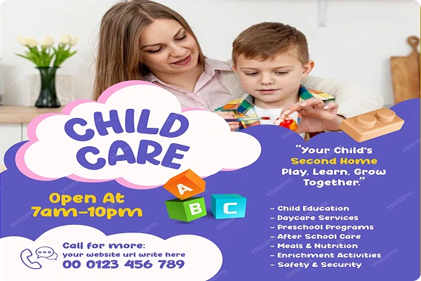 Iklan anda harus menarik perhatian dan menggalakkan ibu bapa mengambil tindakan. Fokus pada visual yang mencerminkan kehangatan dan profesionalisme pusat penjagaan anak anda.